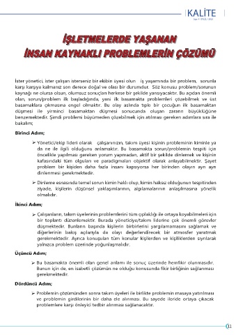 benzemektedir. Şimdi problemi büyümeden çözebilmek için atılması gereken adımlara sıra ile