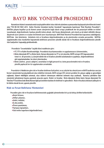 düşürmek üzere yöntem ve esasları belirlemek üzere hazırlanmıştır. BAYÜ Risk Yönetimi Prosedürü’nün kapsamına bakıldığında;