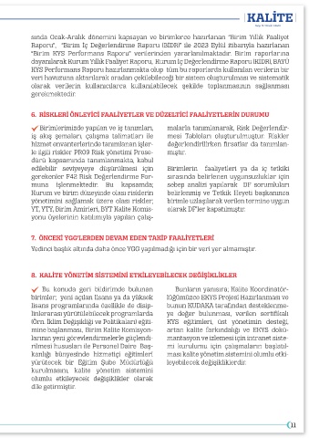 “Birim KYS Performans Raporu” verilerinden yararlanılmaktadır. Birim raporlarına
