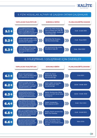 6. İYİLEŞTİRME / GELİŞTİRME İÇİN ÖNERİLER