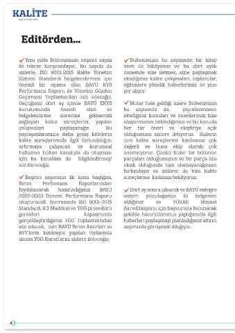 kalite süreçlerimizle ilgili farkındalığını tüm kalite süreçlerine katılımınız çok