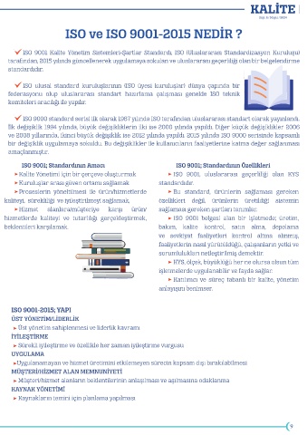 ISO 9001; Standardının Amacı ISO 9001; Standardının Özellikleri
