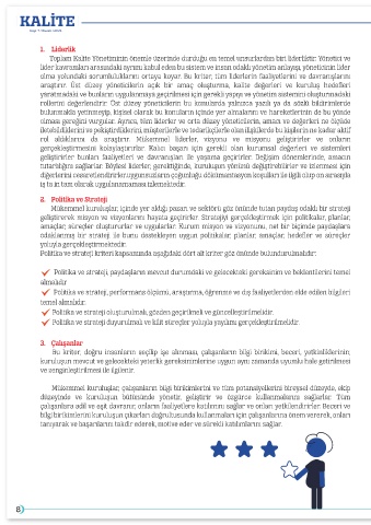 araştırır. Üst düzey yöneticilerin açık bir amaç oluşturma, kalite değerleri ve kuruluş hedefleri