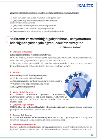 EFQM Modeline göre mükemmel kuruluşlar; çalışanları ile ilgili olarak kapsamlı performans ve algılama