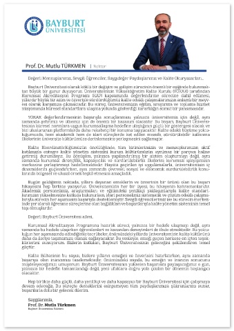 luğun her aşamasında edindiğimiz tecrübeler, önümüzdeki yıllarda üniversitemizin kalite kültürünü