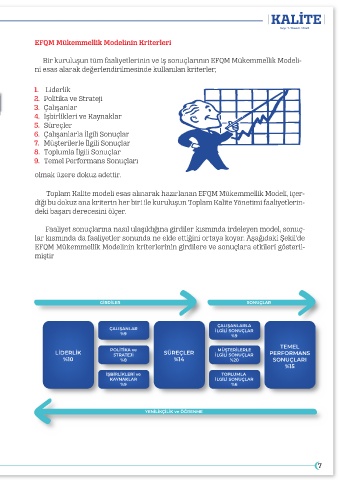 Toplam Kalite modeli esas alınarak hazırlanan EFQM Mükemmellik Modeli, içer-